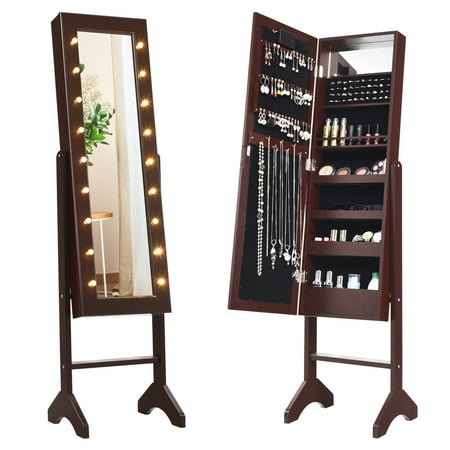 Storage organizer jewelry box standing armoire costway led cabinet full length mirror jewellery make white mirrored freestanding greenco free large merlo.